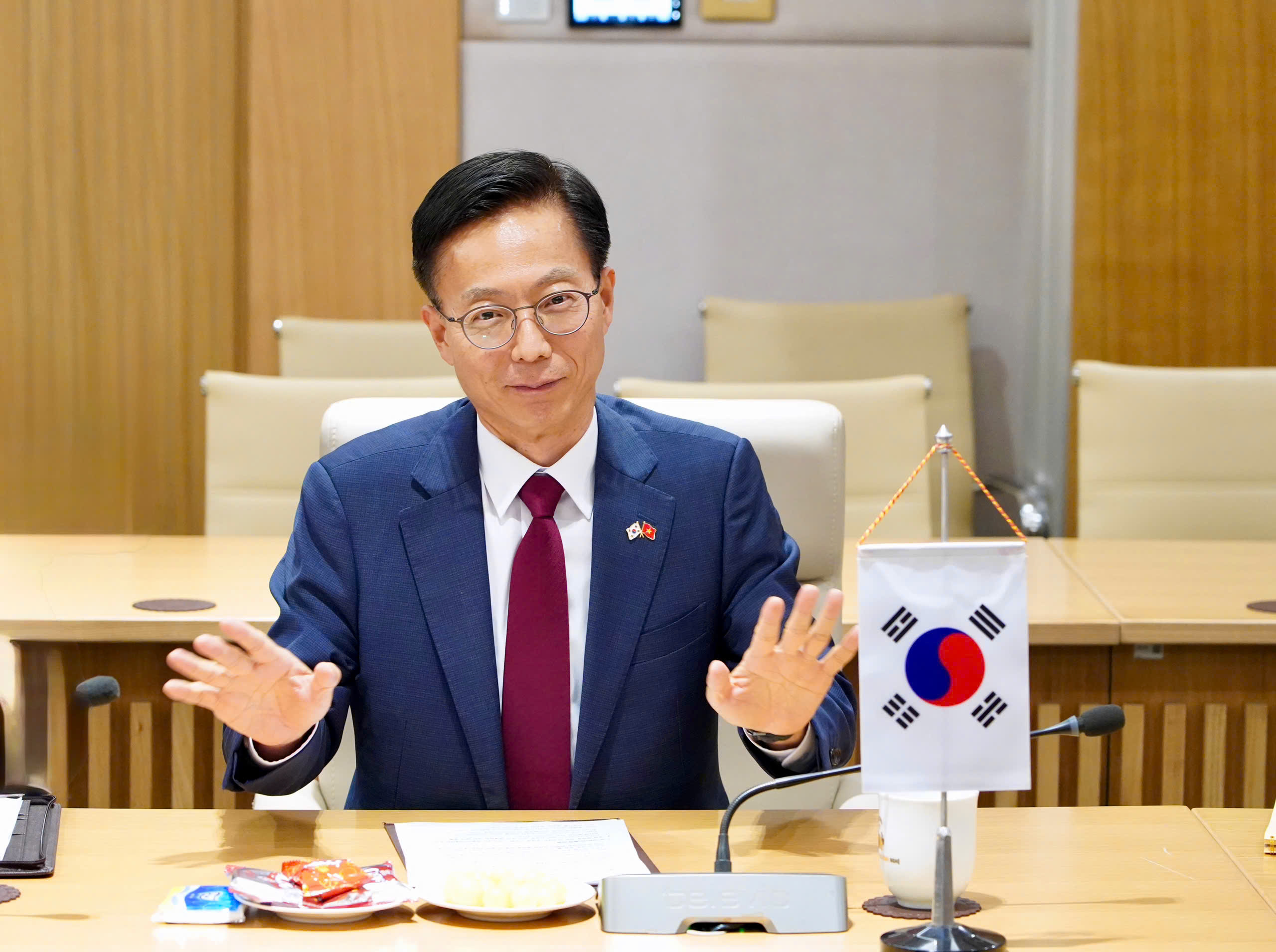 Bộ trưởng Bộ Sở hữu trí tuệ Hàn Quốc Kim Yong Sun phát biểu tại buổi làm việc.